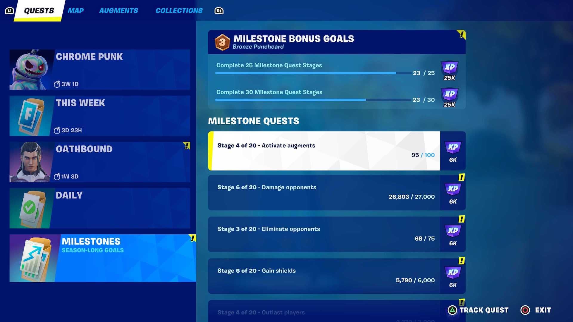 In addition to getting XP from completing daily and weekly challenges, there are 10 milestone quests: